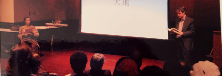at The College of New Jersey (TCNJ), as well as the director of the Chinese and Asian Studies Program, has invited Huang Xiang for four visits. These visits included special poetry recitation events and exchanges with students. Each time, Professor Mi co-hosted these events with Professor Michael Robertson, famous scholar of English and American Literature , a Whitman Studies expert and a colleague from the English Department. Both are great admirers of Huang Xiang's work. After each event, Professor Mi on behalf of the college, treated Huang Xiang and the guests to authentic Sichuan cuisine, making each occasion a delightful experience. Huang Xiang and I fondly remember the wonderful and passionate times filled with poetry and cultural exchange at TCNJ. These photos should be from the second time Huang Xiang held a special recitation at TCNJ. The third visit to TCNJ was a recitation with artists, poets, and a tea ceremony master Red Squad. The fourth visit to TCNJ was a recitation with the free verse poet Meng Lang. Meng Lang passed away prematurely due to illness in December 2018; In memory of Meng Lang. Will find and share the photos of the recitations with them later.